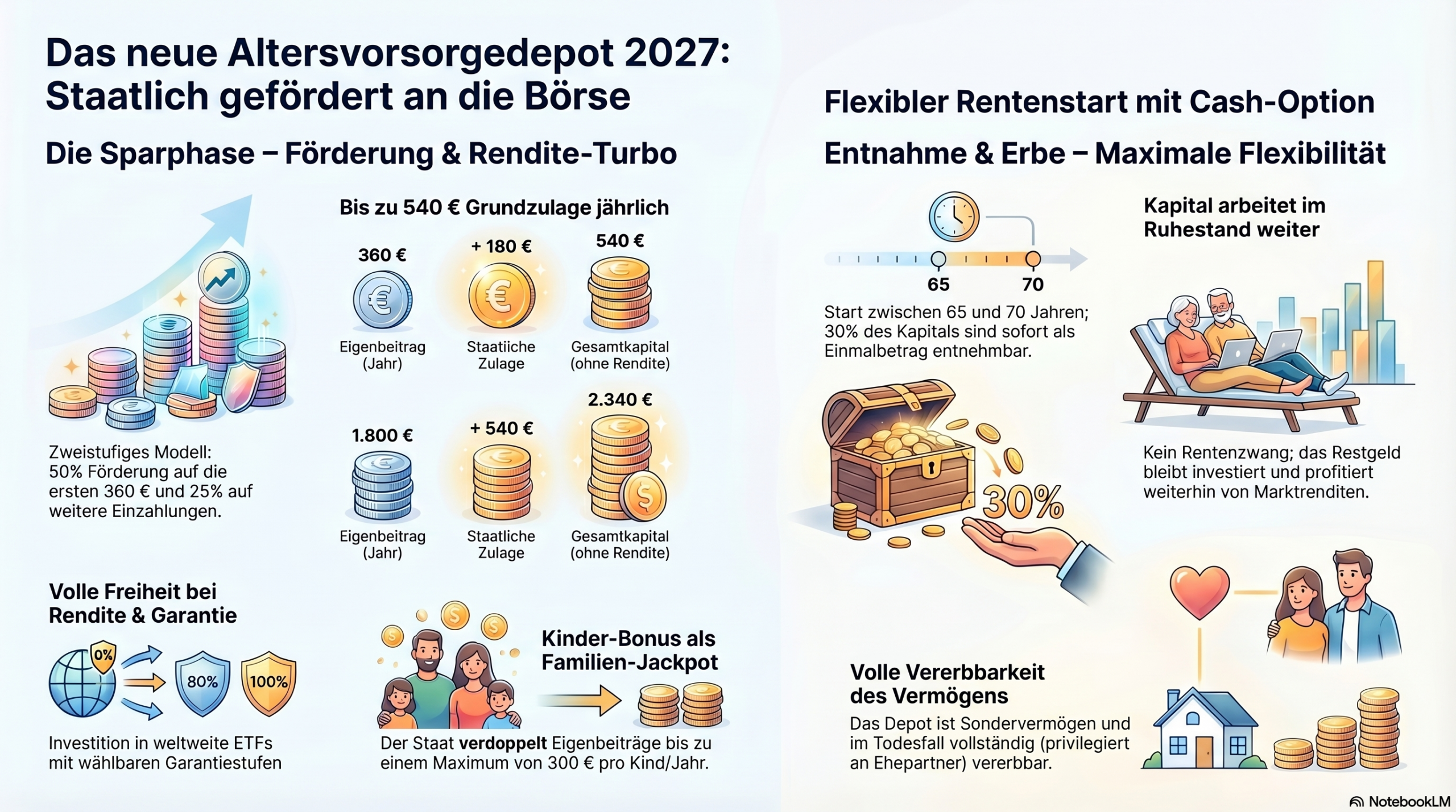 Staatlich gefördert an die Börse: So funktioniert das AV-Depot: Von der Grundzulage bis zum Kinderbonus. Nutze die staatlichen Förderung, um deinen Zinseszins-Effekt zu maximieren. Alle Vorteile der Spar- und Entnahmephase auf einen Blick.